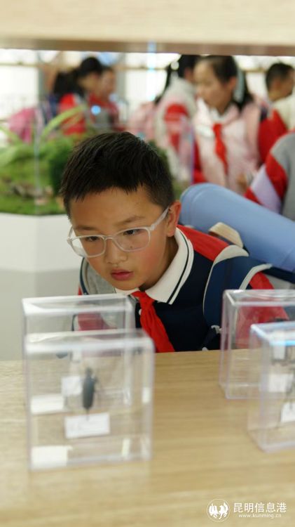 活动现场,来自中科院植物研究所和云南林业科学院的各位植物学大咖亲自助力生物多样性科学知识普及。 昆虫标本馆内,云南省林科院周楠研究员向学生们普及昆虫的相关知识,知道了云南"动物王国"的由来,以及昆虫与其他动物的区别、蝴蝶与飞蛾的区别,既普及了科学知识,又激发了大家探究自然的兴趣。