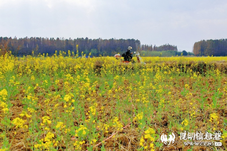 春天,在江尾社区,一垄垄、一畦畦金灿灿的油菜花,拼合成一张巨大的金地毯,一直铺到滇池边,与水天连成了一线。这片油菜花有800亩,是江尾社区响应国家滇池保护的政策,在退耕后的土地上种植的。