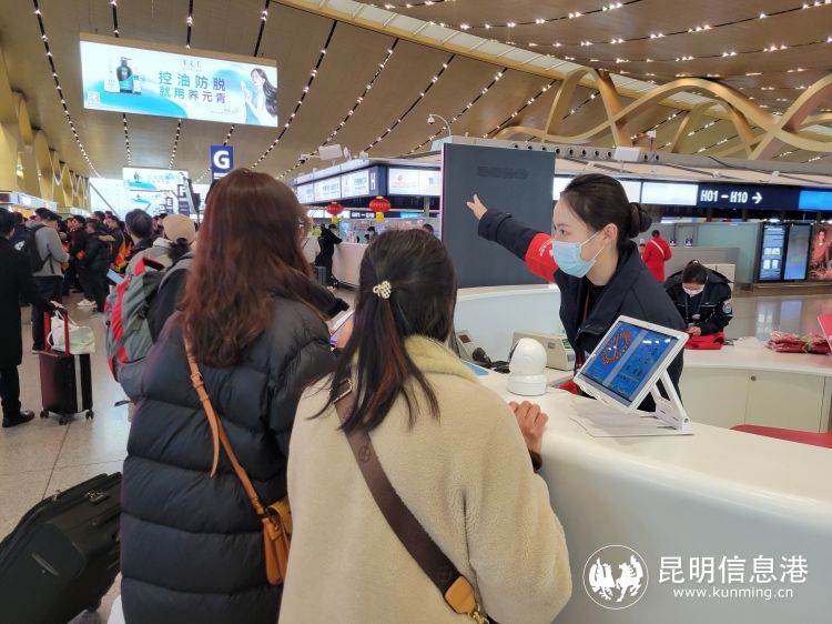 春运期间,昆明机场为中转旅客提供了许多特色服务。在各中转办理厅和休息厅均有迎新年活动,旅客通过参与互动话题抽奖,领取小礼品;在春节黄金周期间,机场在中转休息厅均为旅客免费提供了小零食、饮料等;为中转时长在4小时以上中转旅客,免费提供昆明市区城市观光,可从翠湖讲武堂、南强街、斗南花市、海埂公园、云南省博物馆路线五选一,每天限量100张,先到先得。