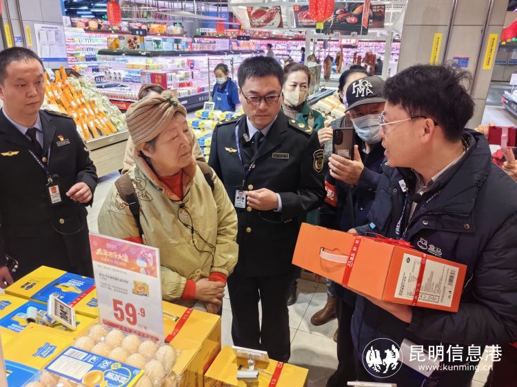 活动现场,昆明市市场监督管理局工作人员详细介绍了监管部门在节日期间围绕食品安全开展的一系列有力举措,在抓好日常监管和执法检查的同时,突出工作重点。为了加强督促检查,监管部门对照《食品销售检查要点》,重点开展证照、禁售食品、食品安全制度、食品从业人员管理、食品标签标识、贮存条件、进货查验、特殊食品销售等检查,保障企业主体合法合规开展食品经营活动。其次是做好法规宣贯。将专项检查与法律宣贯相结合,重点对《中华人民共和国食品安全法》、《中华人民共和国食品安全法实施条例》、《食品经营许可和备案管理办法》等进行法律宣传,筑牢经营者法律意识,强化法律责任落实,倡导诚信经营和品质提升,自觉接受社会监督。最后是综合施策,压实责任。监管部门采取预警提示、责任约谈、签订承诺书等形式,不断压紧压实经营者主体责任,严控食品安全风险隐患,严格落实食品安全“四个最严”要求。