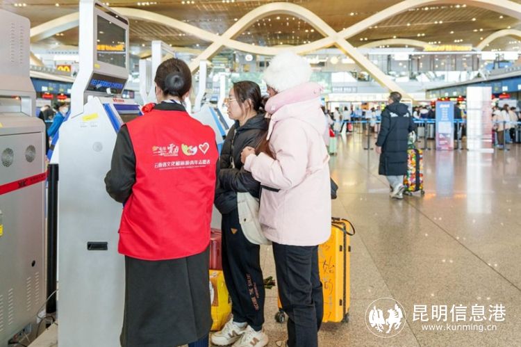 “过年好,您的行李有些多,我帮您送一程吧。”“您是要办理托运吗?来,我帮您。”2月10日,大年初一,在客运站、机场、火车站,一个个“红马甲”在人群中格外闪耀,今年的春节假期,云南省文化和旅游志愿者散落在每一个游客密集的地方,为大家送去新春的祝福和志愿服务。