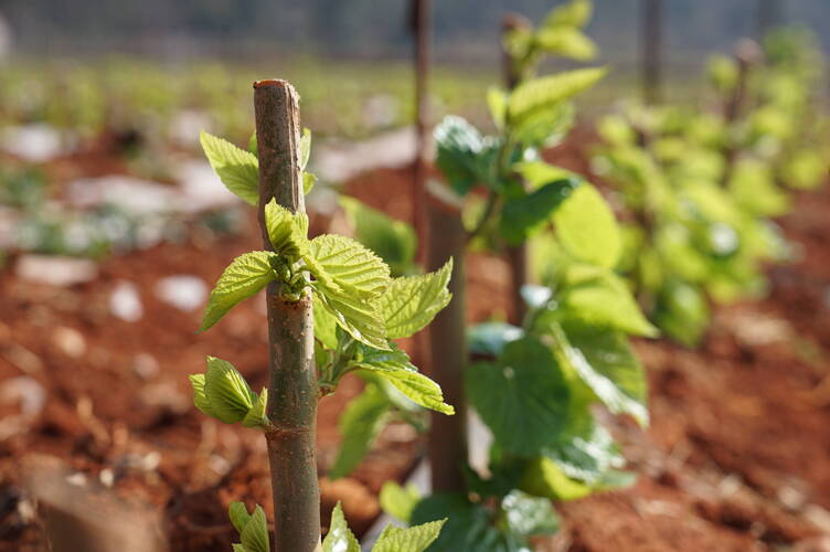 陆良县芳华镇桑粮套种示范基地整合移民安置区蚕桑产业扶持资金及村委会集体资金、土地资源,于2022年底建成300余亩优质桑苗,今年基地将迎来首年养蚕。为避免春旱影响桑树成长,保障春蚕养殖顺利养殖,在桑粮套种示范基地项目建设中,双合村委会加大灌溉沟渠、高效节水实施设备铺设力度,做到田田通管网,极大地方便了农户桑田管理。