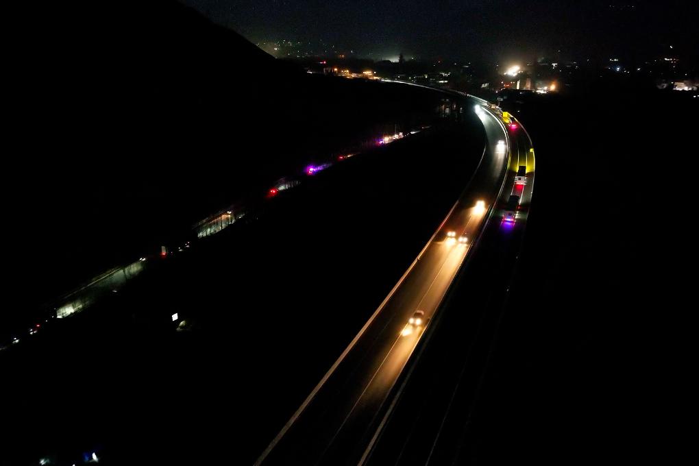 2023年12月25日,救援车辆在临大高速公路上疾驰。(马昱炅 摄)