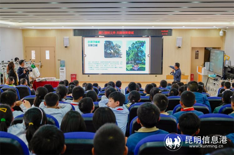 昆明市绿化委员会办公室何凯在和同学们的互动中,围绕“植树节”的由来及全民义务植树的八种尽责方式等内容展开知识宣讲,同学们了知晓3月份昆明处于干季,降雨量少。3月植树没有充足的水源,较难保证成活率,而每年6月才是昆明植树的最佳时节,有充足的雨水浇灌,成活率较高,后期管护成本也较低。