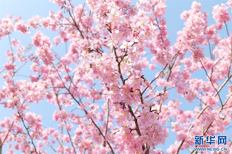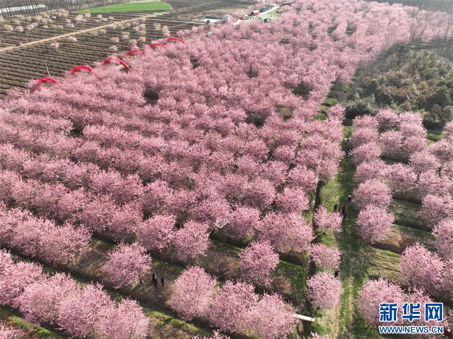 芳菲三月,春回大地,安徽省全椒县开启了一年一度的浪漫樱花季。3月17日,以“‘樱’你而来 ‘椒’个朋友”为主题的第二届全椒县马厂樱花节开幕,占地近千亩的马厂龙山樱花园群樱绽放,前来踏春赏樱的市民和游客络绎不绝。新华网发(肖一摄)