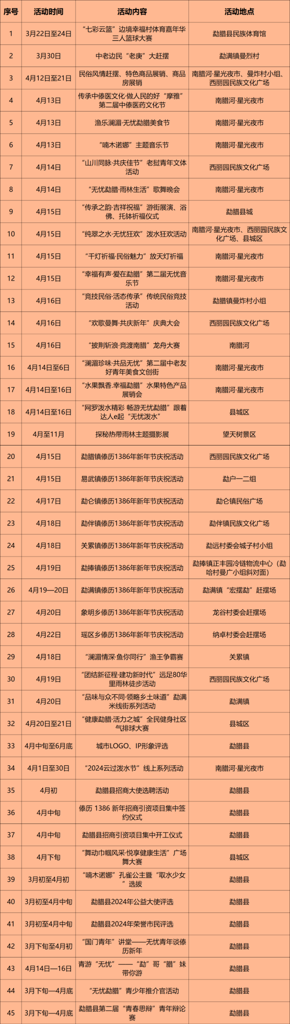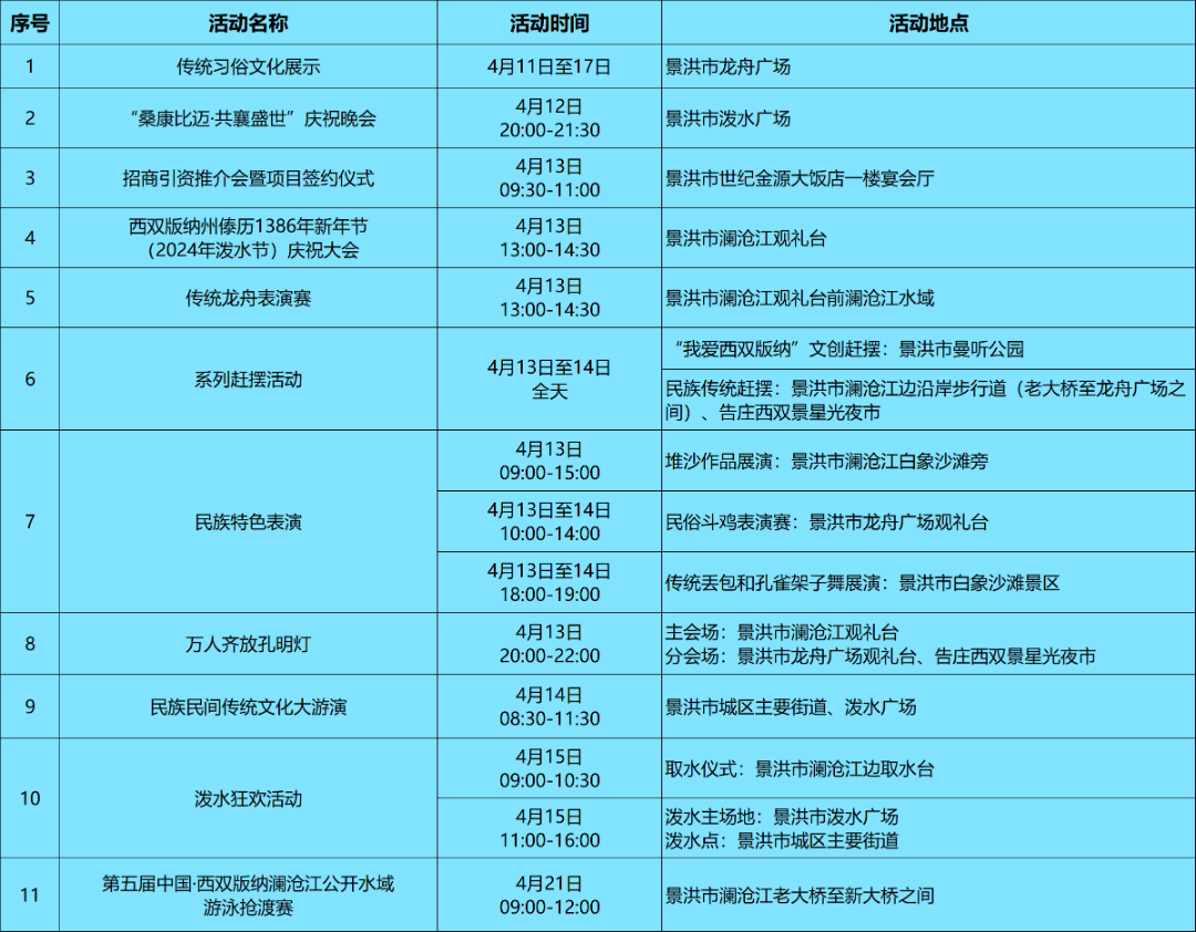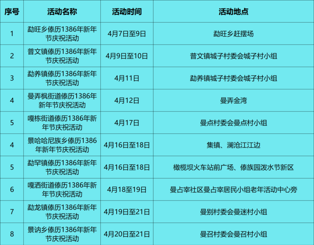 景洪市各乡镇(街道)傣历1386年新年节系列活动日程表