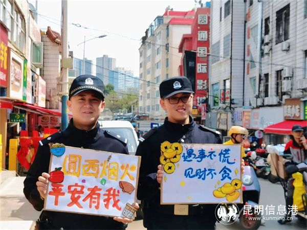 蒸腾的雾气带着早市的味道打破黎明的破晓,夜晚华灯初上带着喧嚣带你寻找不想入眠的理由。圆西路,作为昆明著名的老街和“网红路”是最具烟火气的存在,在一片生机勃勃的“烟火气”中,也流动着五华公安最贴心的守护。