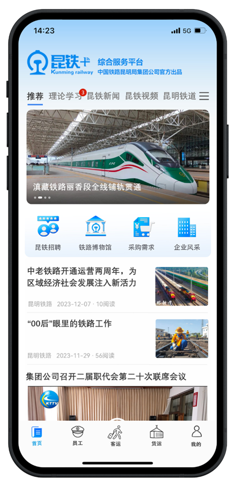 “‘昆铁+’综合服务平台对旅客开通了昆铁佳旅、铁路资讯、企业风采、铁路招聘、云南铁路博物馆等栏目。”国铁昆明局信息技术所副主任兼总工程师、“昆铁+”研发主要负责人杨彦忠介绍,“昆铁+”起到了让社会大众了解铁路、理解铁路、支持铁路的积极作用。