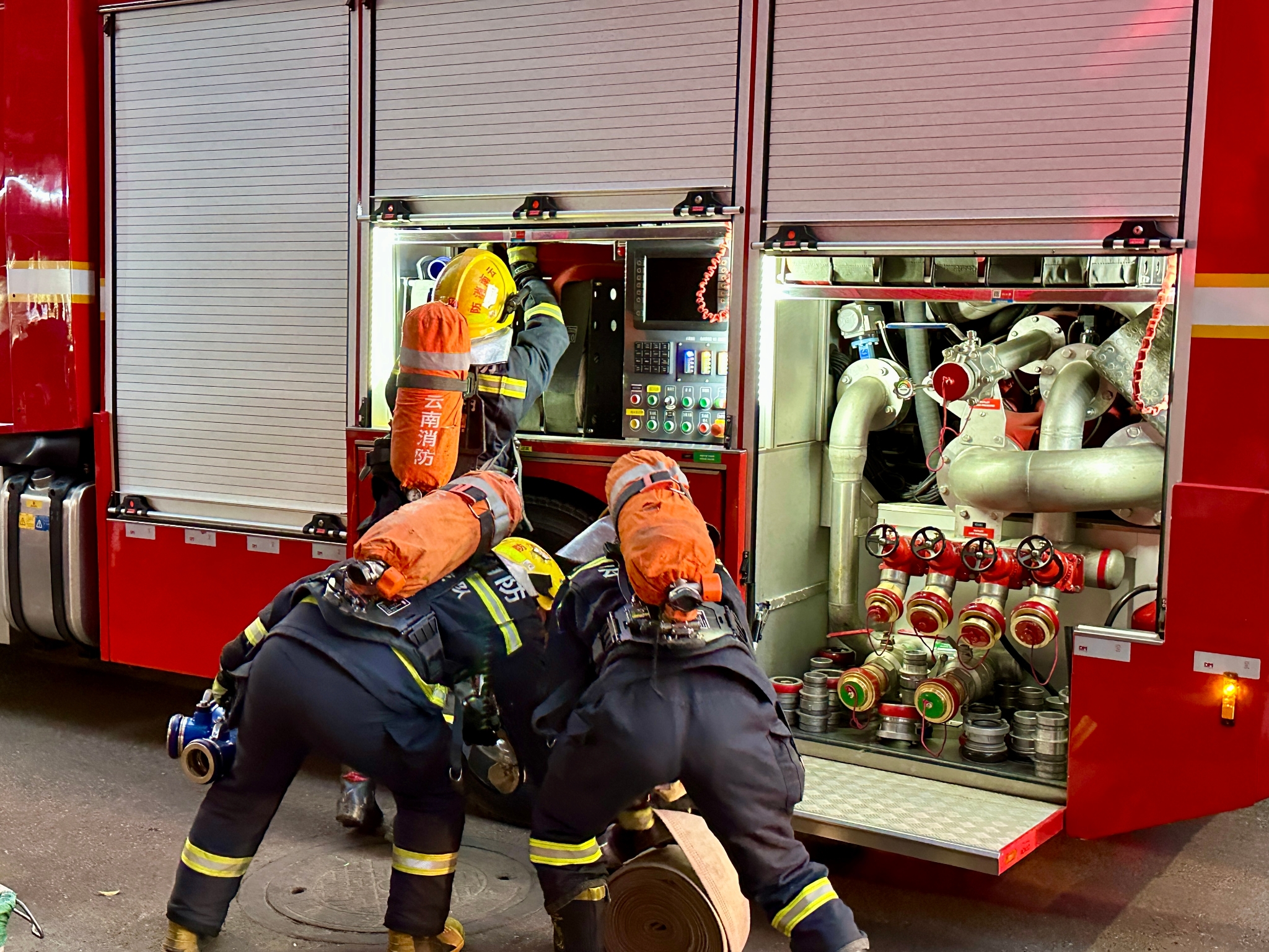 消防员积极组织救援