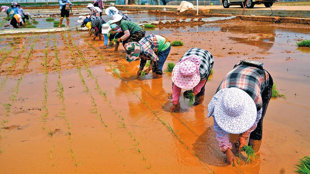 近日,袁隆平超级杂交水稻蒙自示范基地进行秧苗移栽,1400盘秧苗被移栽到100亩稻田中。今年育秧的品种是袁隆平超级杂交水稻新品种“卓两优1126”和“粒两优8022”,两个品种都将攻关亩产1200公斤的目标。(记者饶勇 通讯员王晓梅/摄)
