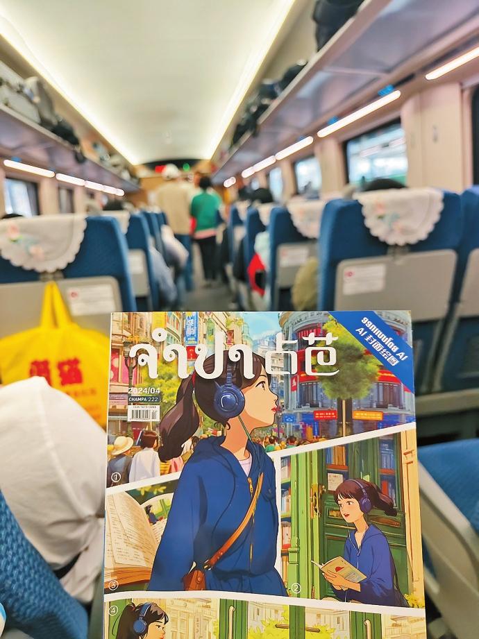 《占芭》杂志成为中老铁路国际旅客列车车载读物。 本报记者 朱东然 摄