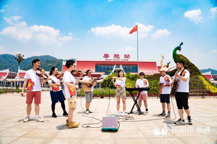 一条铁路蔓延千里,不仅缩短了时空的距离,更带动沿线人民让彼此走得更近。在D88次列车出站口,站台摇身一变,成为一个展示呈贡传统文化的生动舞台,“见龙不见人”的非物质文化遗产“小独龙”舞,跳出龙腾飞舞的艺术效果;而呈贡民间绘画的展示,不仅饱蘸生活激情、田园色彩,更是倾注着作者对新时代幸福生活的热爱;现场的创意主题墙吸引了众多旅客纷纷打卡拍照……如此创意的迎宾活动让每位旅客在到达的第一时间感受到了旅途的温暖与当地人民的热情。