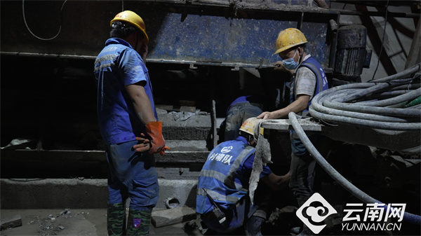 在正洞深1100多米高黎贡山的地下,面对黑暗、空间狭小、高温高湿度、有害气体等恶劣的工作环境,一批批工程师坚守作业,日日夜夜为推进隧道建设不懈努力。掘进班、衬砌班、钻爆开挖班、注浆班等多个班组协同施工,共同攻克每一项面临的全新地质课题,保证隧道建设各个环节正常推进。