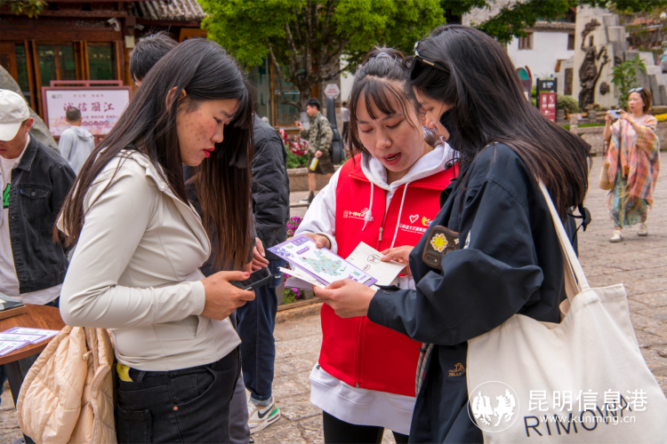 丽江古城文旅志愿者为游客发放“寻花册”