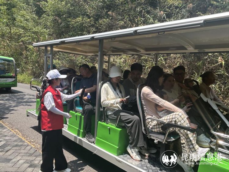 普洱太阳河国家森林公园志愿者贴心为观光车放下扶手