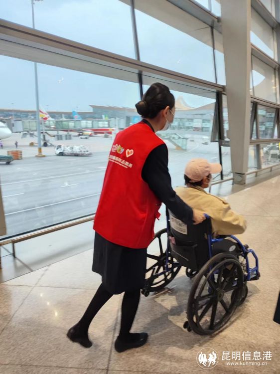 文旅志愿者帮助行动不便的特殊旅客