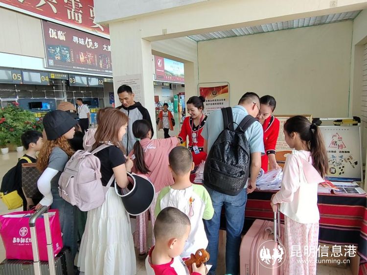 在昆明长水机场,为迎接旅客出行高峰、维持机场的现场秩序,各交通枢纽站的文旅志愿者们耐心引导、积极沟通,活跃在咨询处以及手续办理处周围,为旅客们提供热情、细致、周到的服务,获得了广大旅客们的一致好评。