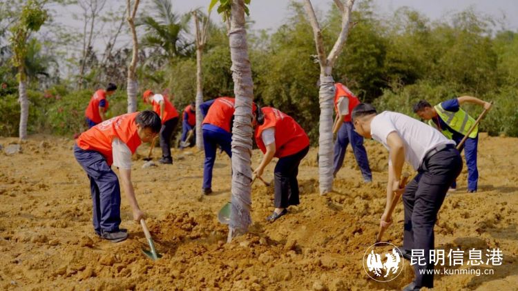 文旅志愿者在机场进行义务植树服务活动