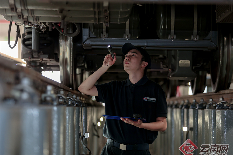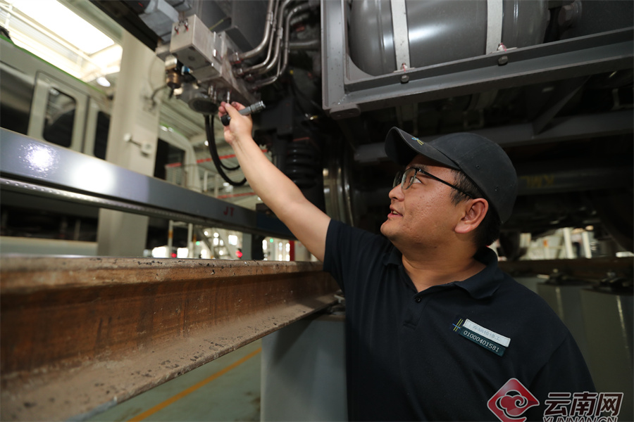 昆明地铁5号线串联起昆明各大旅游景点,是一条“春融万物”主题的自然生态景观线,“五一”假期客流量显著增长。每当5号线列车结束运营回到位于渔村停车场的运用库,昆明地铁运营有限公司五号线运营分公司维保管理部的各车间、各班组便忙碌了起来,他们各司其职,一丝不苟地执行岗位作业标准。