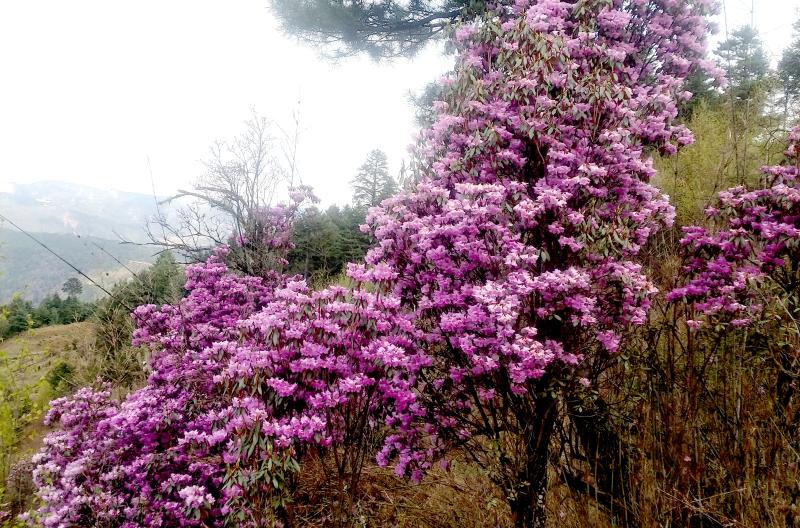 4月底以来,香格里拉杜鹃花进入盛开期。在虎跳峡镇红旗村至小中甸镇的国道214线沿线,漫山遍野的杜鹃花把一座座山头装扮得如诗如画,让人流连忘返。(记者马建军 摄影报道)