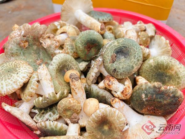 “这已经是第二波了,头水青头菌昨天一到市场就被买走了,量不是很大。”野生菌摊贩李女士介绍,新上市的青头菌有两公斤左右,每公斤售价700元。“鸡油菌也不多,要卖450元一公斤。”