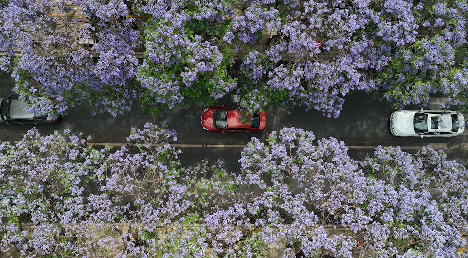 “五一”期间昆明蓝花楹盛放 孙兵、张睿纹摄
