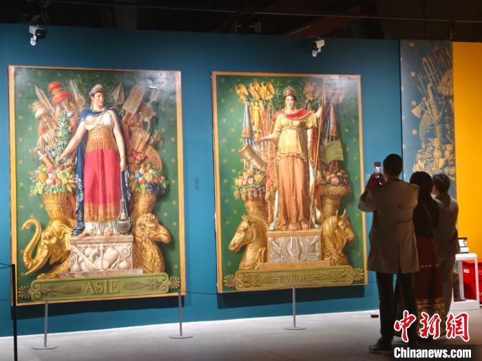 4月13日,观众拍摄挂毯模板,左图为“亚细亚”,右图为“欧罗巴”。苏婧欣摄