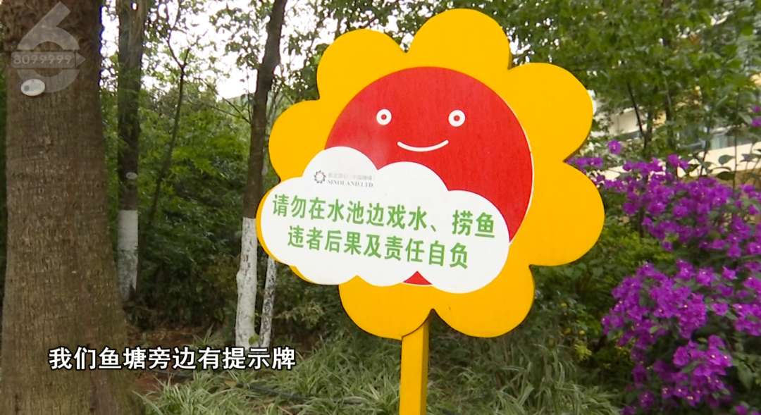 小区物管负责人:“监控里看到我们的人在叫他(男孩),他不理会,我们鱼塘旁边有提示牌,该有的防护措施、提示牌都有。”