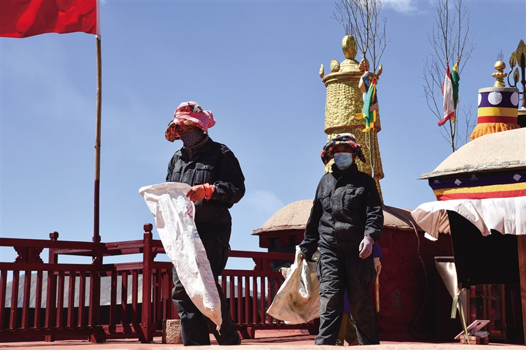 当日,在达桑的带领下,记者一行看到的泥匠组、防虫办所开展的工作,只是维修科日常工作的冰山一角。与此同时,还有石匠组、木匠组、裁缝组等,每天都在对布达拉宫进行不同的维修保护工作。大家的工作日常,仿佛在打理自己的“家”,一砖一石、一墙一柱,都蕴含着布宫所有工作人员的心血。达桑介绍,维修科对布宫建筑群的定期检查,几十年来从未改变。“通过检查可以发现建筑存在的问题,并及时组织技术人员完成日常维修,才能保障建筑功能的持久,每一年我们维修的工程有上百处。”