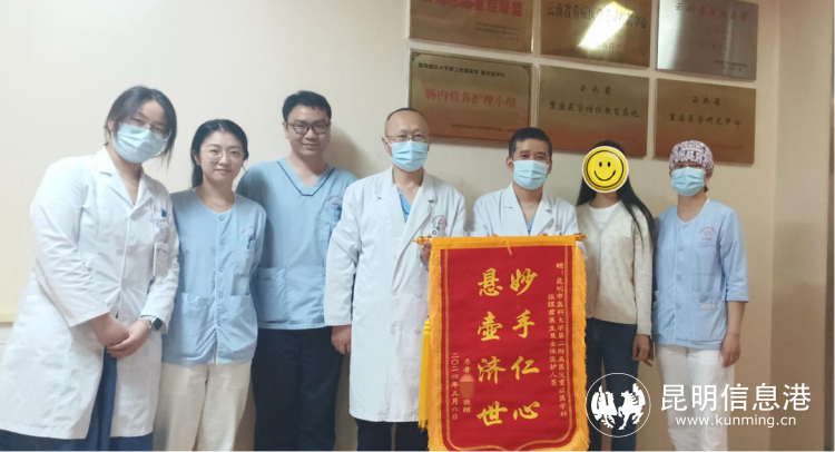 转入重症医学科后,昆医大附二院万林骏主任、王刚副主任、张煜君主治医师等重症医护团队为患者进行亚低温脑保护、抗休克、维持心、脑等器官组织灌注,加强循环呼吸监测、营养支持等系统精准治疗。患者逐渐意识清醒,心功能改善后停用升压药及球囊反搏泵,拔出气管插管。经过昆医大附二院重症医学科8天治疗后,患者病情平稳,转入心血管内科二病区继续治疗,并于5月11日顺利出院。近日,家属特意送来锦旗,对重症医学科团队表示感谢。