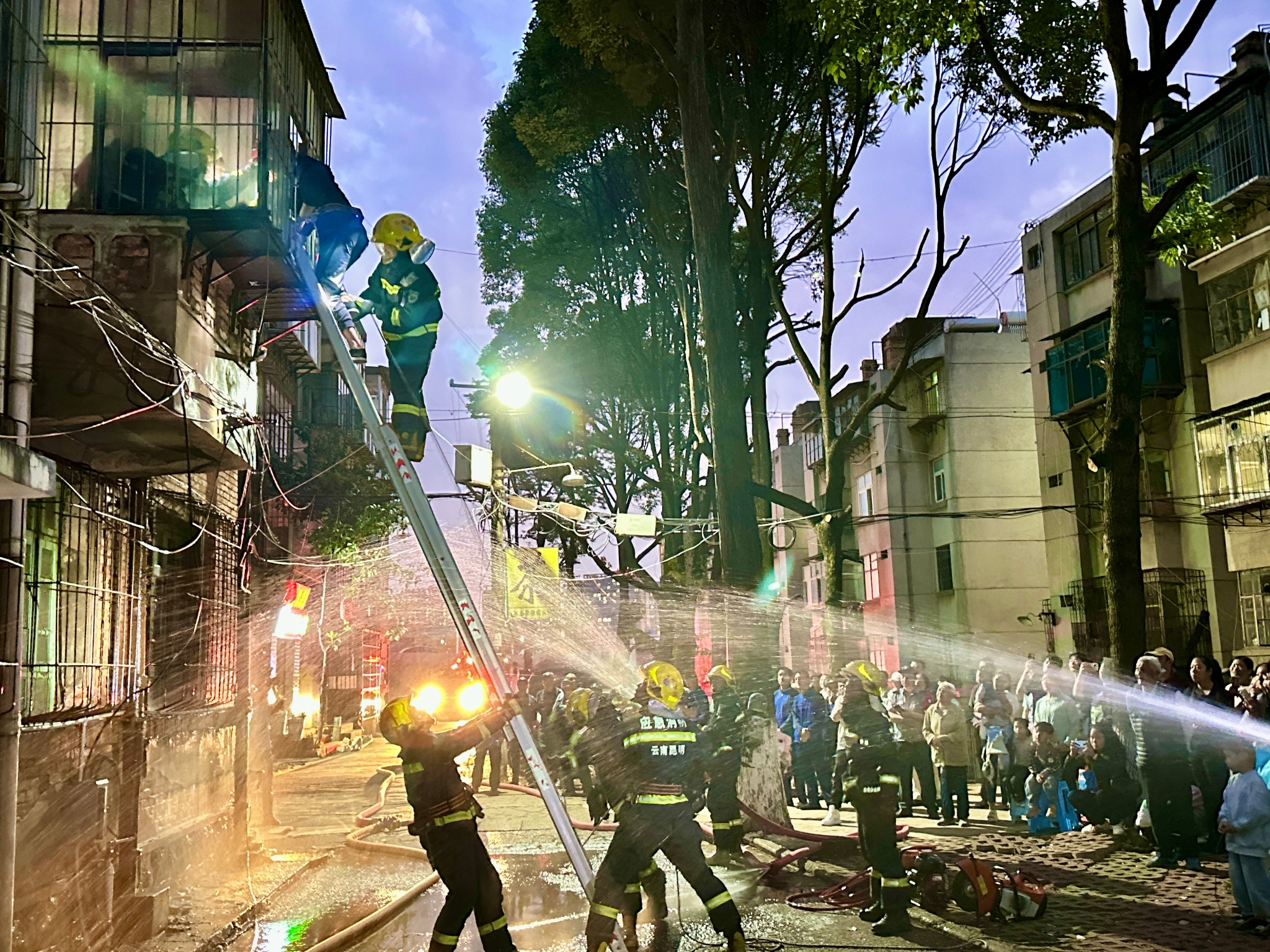 6686体育讯 记者邓国梅 刘雄斌 为深入推进“拆窗破网”行动,畅通消防安全“生命通道”,守护群众生命安全,5月17日晚19时,盘龙区第六场城中村、老旧小区消防安全“院坝课堂”及火灾扑救实战演练在云南农业大学东校区教职工生活区开展。