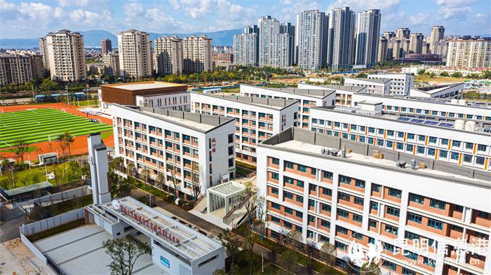 在省、市、区各级政府的大力支持下,学校新校园于2023年8月启用,校园环境优美,教学设施齐备,有专门的科技楼、艺术楼和体育馆,学生宿舍和食堂条件优越,已成为高标准、高品质、高品位的现代化学校的典范。新校园注重现代化、人性化设计,高中三个年级有独立的教学楼,避免因教学安排不同而互相干扰。走班教学楼、科技楼、艺术楼、室内外体育场馆等设施完备,可开展各类选课、科技、艺术和体育活动。学生宿舍条件优越,每间宿舍配备三分离式卫生间,可供4人同时使用,宿舍数量充足,可保证全校学生住校和午休的需要。学校周边多个文化设施、滇池湿地和成熟社区环绕。