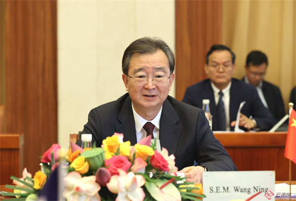 王宁对大使一行到访表示欢迎,介绍了云南经济社会发展情况和“有一种叫云南的生活”的内涵。他说,今年5月,习近平主席在中法建交60周年之际对法国进行第三次国事访问,同马克龙总统达成一系列重要共识,推动中法关系承前启后、继往开来,为我们深化与法国各层级各领域合作提供了遵循。云南与法国友好交往源远流长,近年来双方合作日益深入、成效初显。当前,在习近平新时代中国特色社会主义思想的科学指引下,云南持续扩大对外开放,推进中国式现代化云南实践不断取得新成效。我们愿同法方一道,认真落实两国元首重要共识,进一步拓展经贸往来,加强绿色能源、生物医药等领域互利合作;深化高科技农业、农产品标准化品牌化建设等交流合作;推动科技教育体育深入合作,丰富文化交流,促进非遗保护,加强旅游推介、游客互送,共同推进生物多样性保护,为促进中法全面战略伙伴关系不断发展作出新贡献。欢迎更多法国朋友来体验“有一种叫云南的生活”。