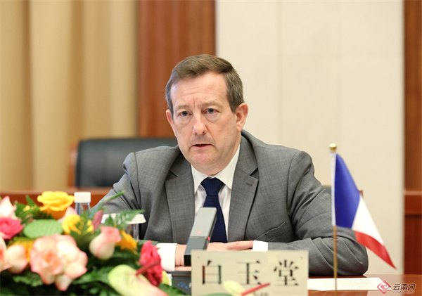 白玉堂对云南发展取得的成绩表示祝贺。他说,云南历史悠久、环境优美,与法国交往交流基础深厚。希望双方以两国元首达成的重要共识为指引,以法中文化旅游年、巴黎奥运会等为契机,持续深化经贸、生物多样性、教育、医疗、语言培训等领域交流合作,实现共赢发展。
