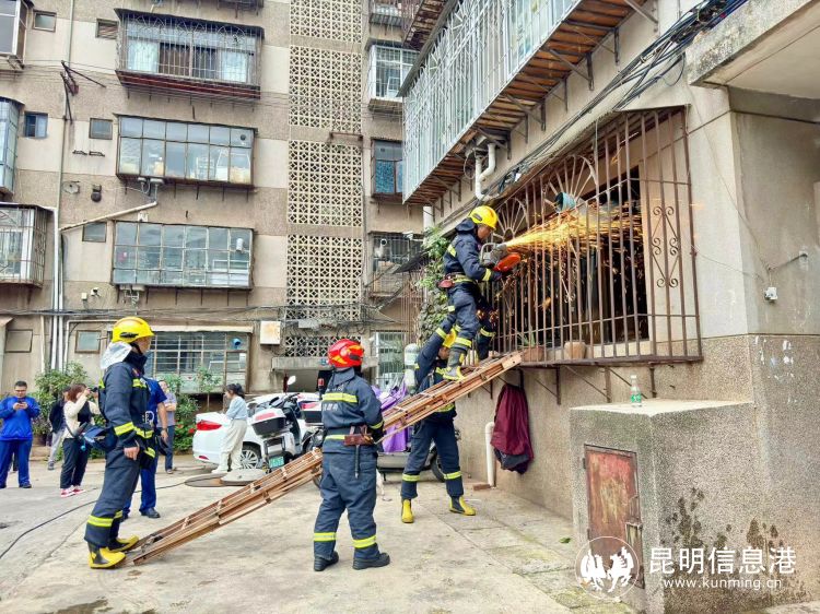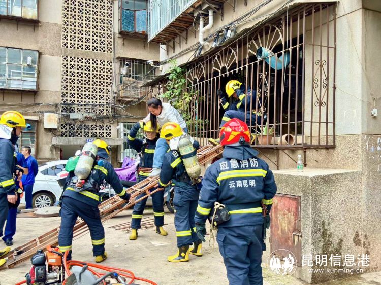 “来啦来啦,消防员叔叔来啦!”“真厉害呀,防盗窗一会儿就被弄开了。”“你看,里面的人被’救’出来了!”在火灾扑救实战演习中,模拟一楼住户家中起火,通道受阻,盘龙区消防大队“破窗拆网”援救被困人员。