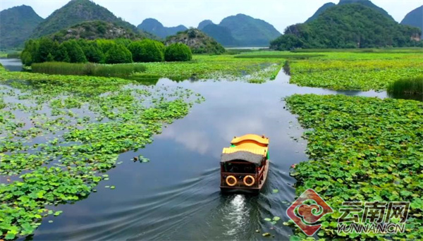 文山普者黑国内水路旅游客运精品航线试点,航程总长12公里,拥有摇橹船、画舫船各类船舶900多艘,总客位数5650位。航线途经国家5A级旅游景区湿地公园、双甲山、天鹅湖、普者黑村等10多个宛若水墨丹青画的景点,集中展示了普者黑“水上田园、彝族水乡、荷花世界、岩溶湿地、湖泊峰林、鱼鸟天堂”6大景观。航线依托普者黑生物多样性特点,让游客领略普者黑独有的荷花“大洒锦”“小洒锦”,以及罕有的“双色并蒂莲”、823种维管束植物等。游客乘坐画舫船沿着曲折环绕的水路,欣赏湖岸孤峰林立,湖中峰影遥遥,山水相依的奇景。