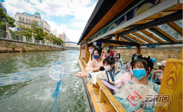 航线依托盘龙江的自然资源和历史人文底蕴,以盘龙江形形色色的桥为切入点,融入科技和艺术元素,利用视频影像、互动体验、虚拟现实结合,全方位植入景区IP,“复活”了“云津夜市、商山樵唱、官渡渔灯、灞桥烟柳”的“昆明四景”,宛如一幅南方边城的《清明上河图》。航线沿岸的清代税务告示牌、商埠界址碑、滇缅抗战、滇越铁路、护国门等历史古迹,讲述了昆明城市的历史变迁和文化传承,展示了“一条江、一座城、一个时代的记忆”,为旅客提供了深度人文之旅,成为“美丽春城休闲观光”精品航线。(云南网 记者李承韩)