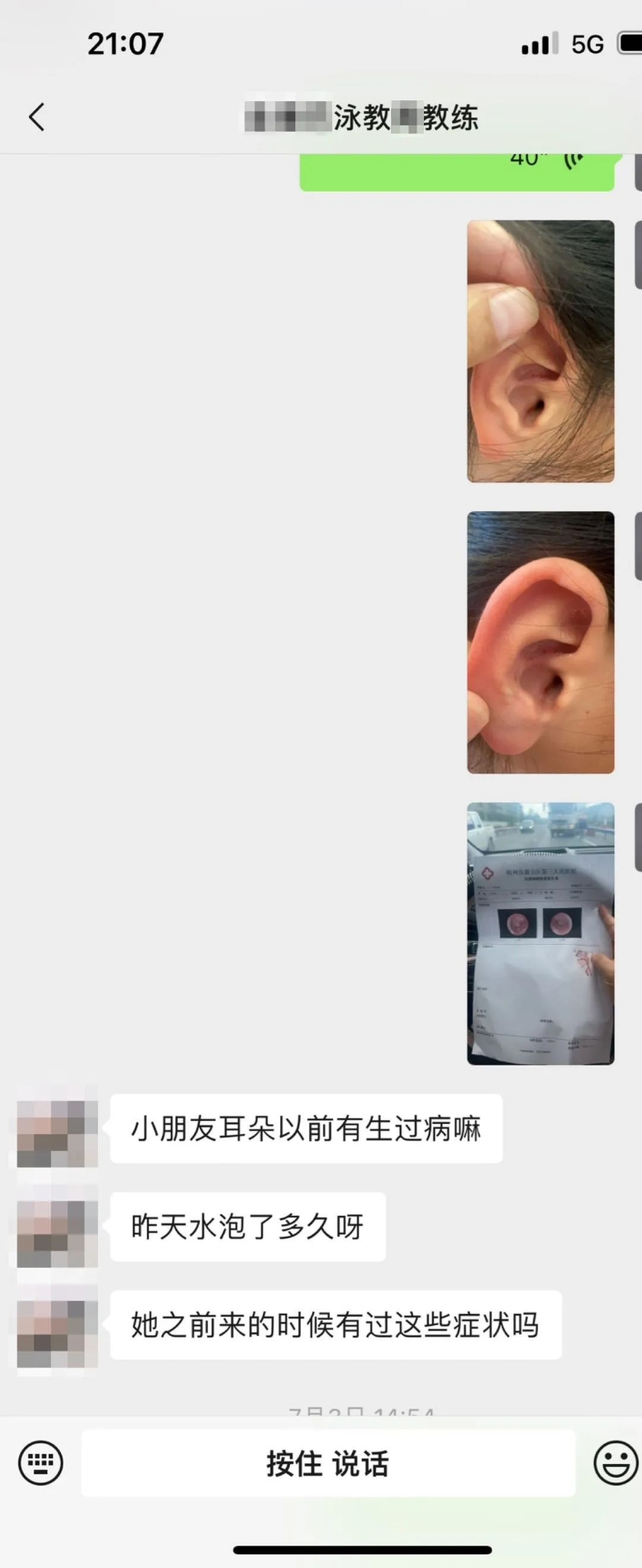 一开始没往游泳方面想,喷药洗鼻子治疗。眼看孩子耳朵好了,教练也在催,就继续去上课。