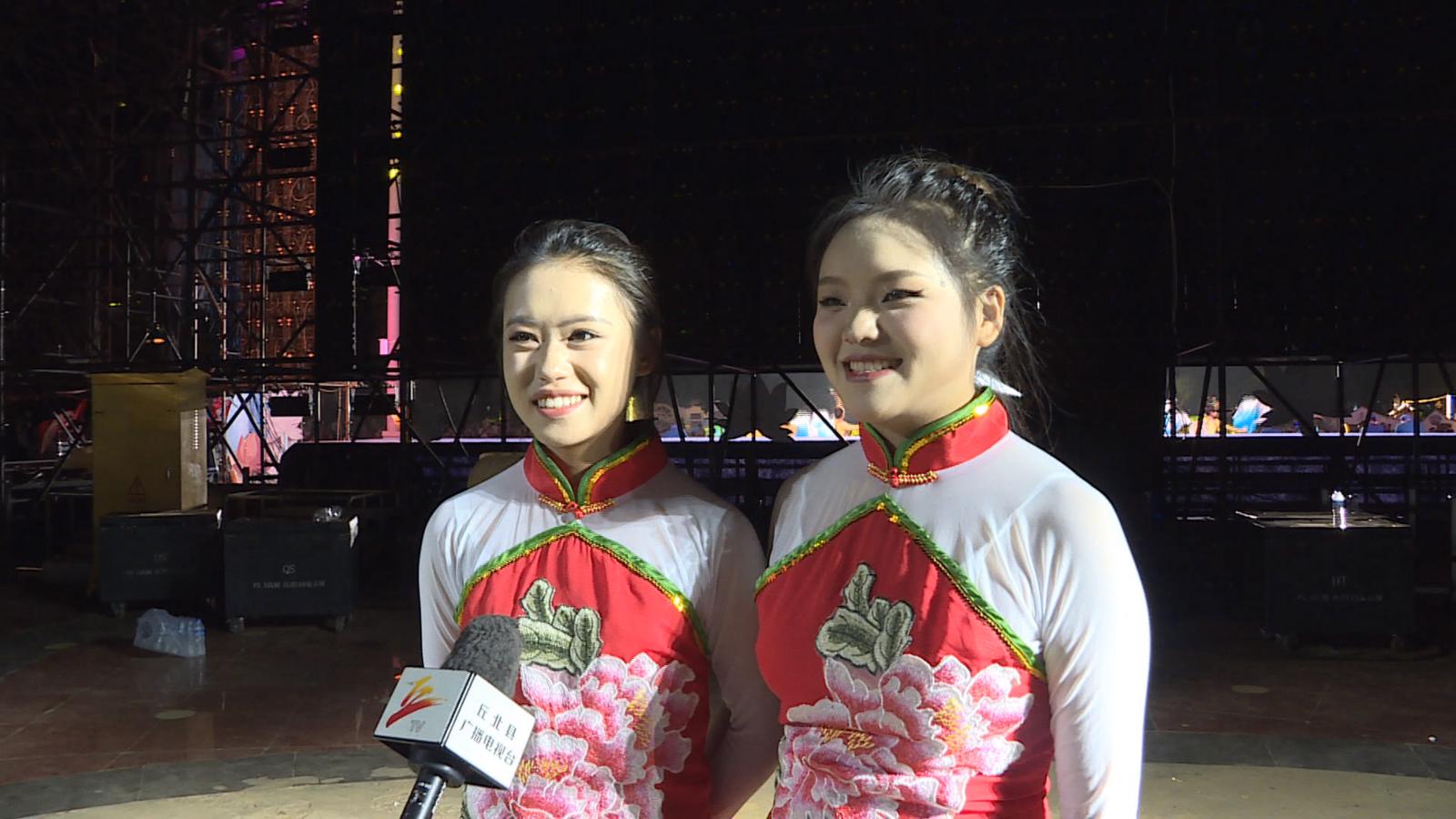 宣威花灯团演员孙洋洋陈露:“今天我们单位表演了绣荷包和猫耳斗勤思,来到这天气很热,但是观众的热情也特别高,这里的民族气息非常的浓郁,在大街小巷都能看到穿着民族服饰的孃孃、叔叔、阿姨,普者黑风景区特别的好看,希望大家也多来这里打卡,下一次,我们也是非常期待可以来到这里游玩、表演。”