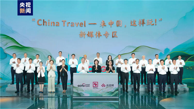 中央广播电视总台华语环球节目中心主任麻静,视听新媒体中心主任钱蔚,央视国际网络有限公司董事长、央视频融媒体发展有限公司总经理过彤与中国144小时过境免签适用口岸所在城市的代表及文化和旅游部中外文化交流中心主任张维国共同启动“China Travel——来中国,这样玩!”新媒体专区