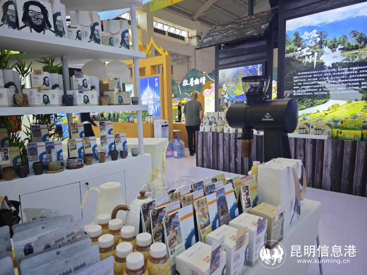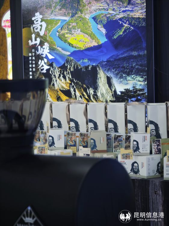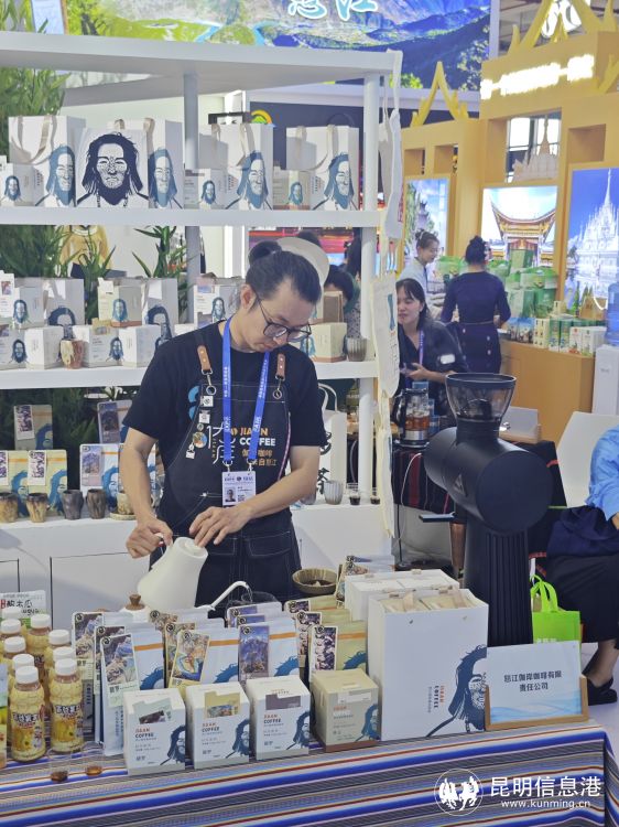 其中,怒江展区上以怒江独有的少数民族“独龙族”纹面女为咖啡外包装设计的本地咖啡品牌——伽岸咖啡格外引人注目。