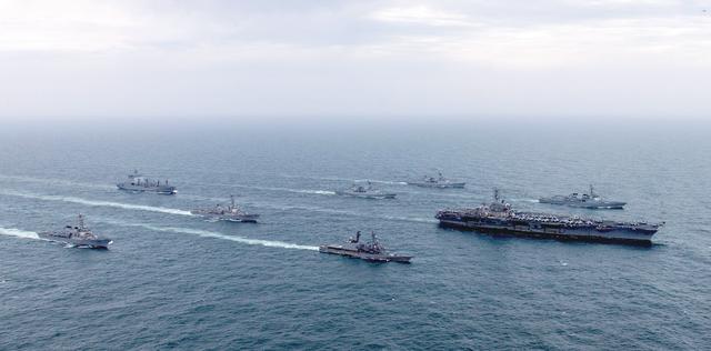 例如,美军在西太平洋进行多边反潜作战演习,在南海与菲律宾海军进行联合行动,并与日本和韩国在东海进行三边演习。此外,美国还与日本海上自卫队在菲律宾附近水域举行了演习。