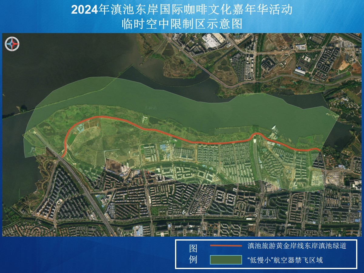 为维护2024年滇池东岸国际咖啡文化嘉年华活动在昆举办期间的公共安全和低空安全,杜绝各类“低慢小”航空器违法违规飞行活动,根据《中华人民共和国刑法》《中华人民共和国治安管理处罚法》《中华人民共和国民用航空法》《通用航空飞行管制条例》《无人驾驶航空器飞行管理暂行条例》等相关法律法规,现将有关事项通告如下: