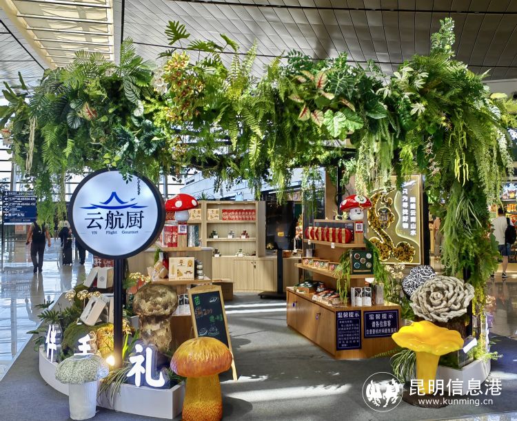 当下正是野生菌上市的季节,空港航食公司在候机楼内设立特色展示区,展示了干巴菌、鸡枞菌、青头菌等新鲜野生菌产品,以及松茸饼干、松露酱等加工食品,把云南这一“世界野生菌王国”的食用菌产业和文化淋漓尽致的展现出来。让旅客能够细致了解食用菌的种类、生长环境、营养价值以及烹饪方法。不仅丰富了旅客在昆明机场的候机体验,更让云南的优质农副产品“找得到”,商品“出得来”、市场“销得畅”、用户“体验好”,模式“可持续”。