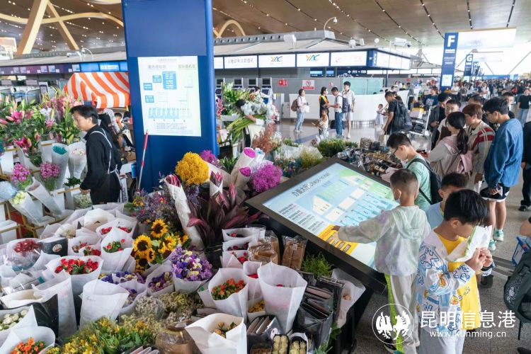 在昆明机场,依托区域鲜花产业优势,以花为“饰”,持续擦亮“云花”名片,用鲜花点亮服务细节。机场在航站楼内打造多个鲜花主题景观,众多旅客拍照打卡发朋友圈,营造出鲜花满楼,鲜花满“心”的温馨氛围,为旅客送上独属于云南的春之浪漫。