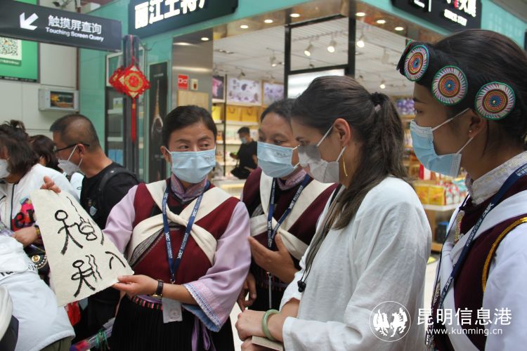进入长水机场,从B1层的恐龙化石装置,到B3出发层的南华野生菌文化展和鲜花售卖区等,无数游客掏出手机拍照打卡,让旅客在候机时,也能在机场感受云南传统文化和民族风情。