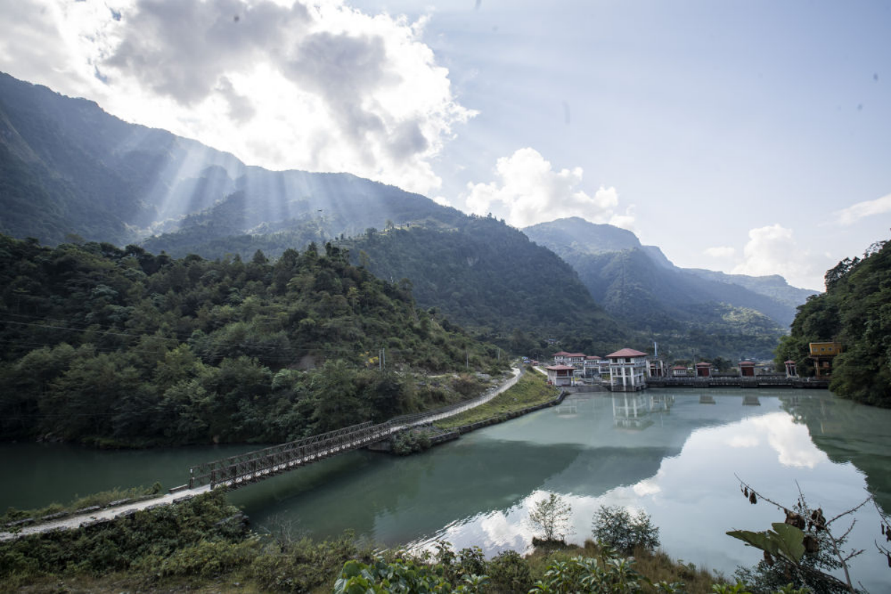 这是2022年11月8日拍摄的位于尼泊尔勒姆宗县的上马相迪A水电站大坝。上马相迪A水电站由中国电建集团海外投资有限公司投资建设。多年来,负责运营该水电站项目的中国水电-萨格玛塔电力有限公司积极履行企业社会责任,助力当地民生保障。新华社发(哈里·马哈尔詹摄)