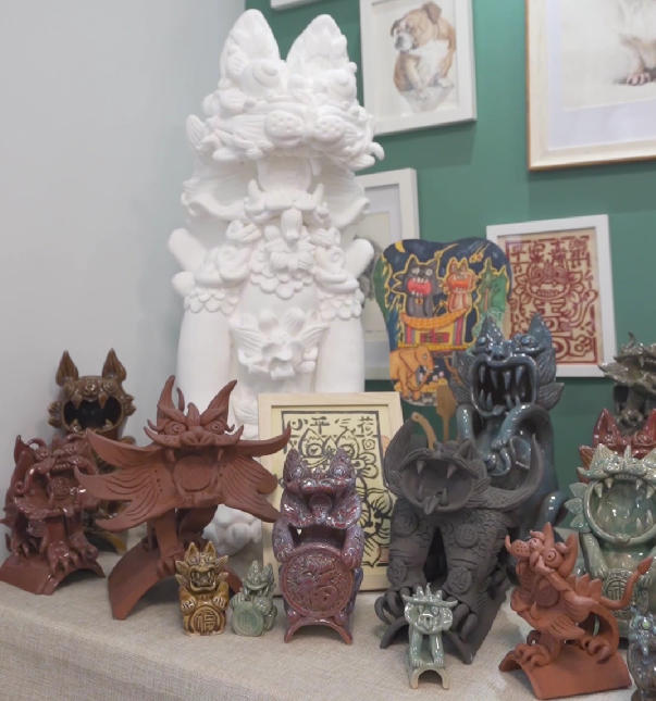 左杰不仅是一位非遗传承人,还是一位美术教师。他所在的学校把非遗与美育相融合,以紫陶和黏土为材料,为全校学生开设非遗瓦猫课程,也会根据孩子们的年龄特点开设彩绘瓦猫、剪纸瓦猫、拼贴瓦猫、黏土瓦猫、紫陶瓦猫和瓦猫甲马等课程,不同年龄的学生都能从这门课程中循序渐进地学习瓦猫的制作技艺。左杰通过带领学生学习瓦猫制作技艺,进一步激发学生的创造力与动手能力,让他们在动手实践中理解传统艺术的精髓,更感受到了传统文化的魅力与价值,为非遗的传承与发展贡献了自己的力量。