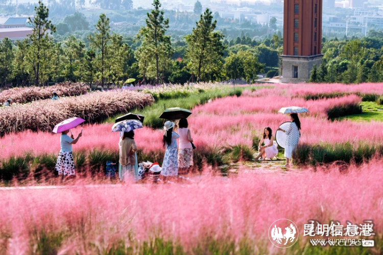 云南大学呈贡校区粉黛花海醉游人 网友@2014CLXQ张/摄