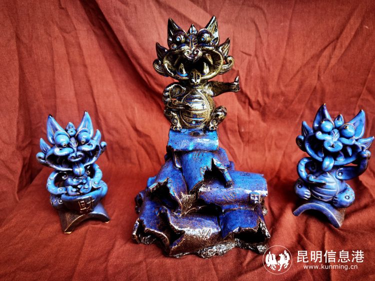 座谈期间,参会者们还参观了正在云南省图书馆展出的“瑞兽驾到—首届云南瓦猫文化文创展”。展览展品丰富多彩,不仅有上百年历史的文物级瓦猫,还有国家级、省级非遗传承人及陶艺大师的瓦猫作品,更有陶器、瓷器、石刻、金属、面塑、毛绒、纸质、绘画等多种形式的瓦猫文化文创展示。云南省图书馆宣传策划部主任代红兵、云南省社科院研究员马佳、文达画廊负责人蒋凌、祝巍等通过网络方式进行讨论,对云南瓦猫文化的保护性研究及文创的高精准定位给予肯定。